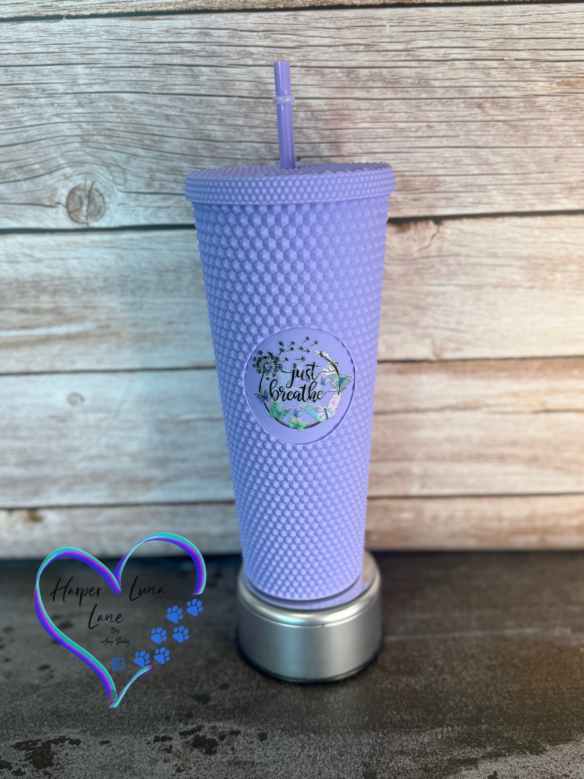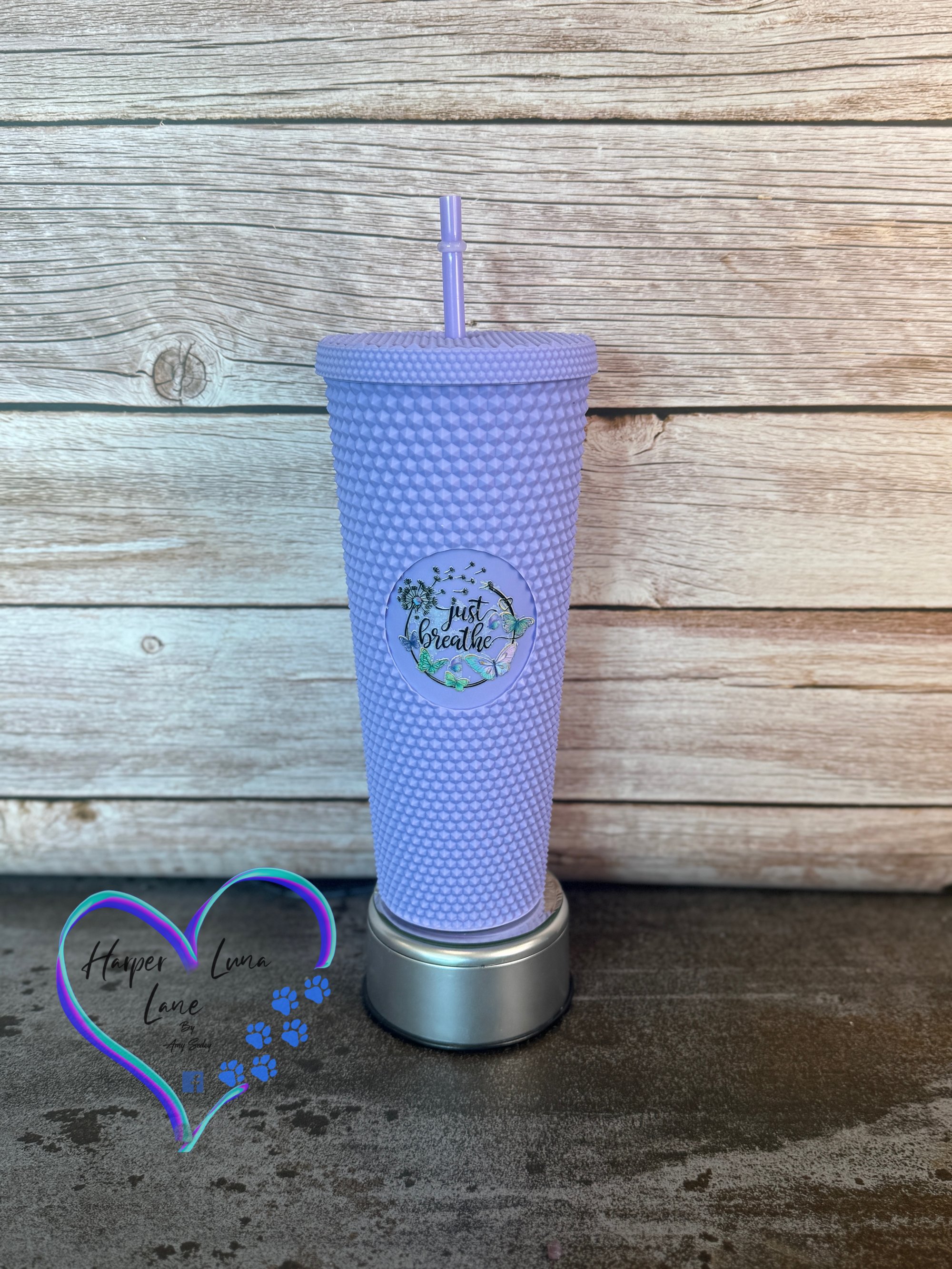 24oz Just Breathe Purple Studded Tumbler
