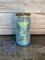 Snow globe style tumbler- glitter fluid in the double walled glass tumbler
